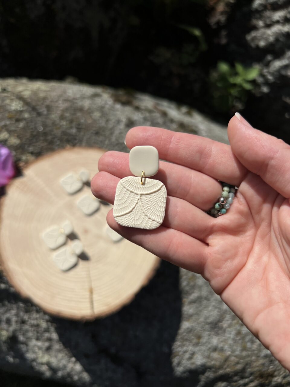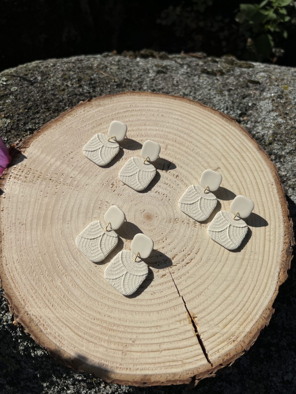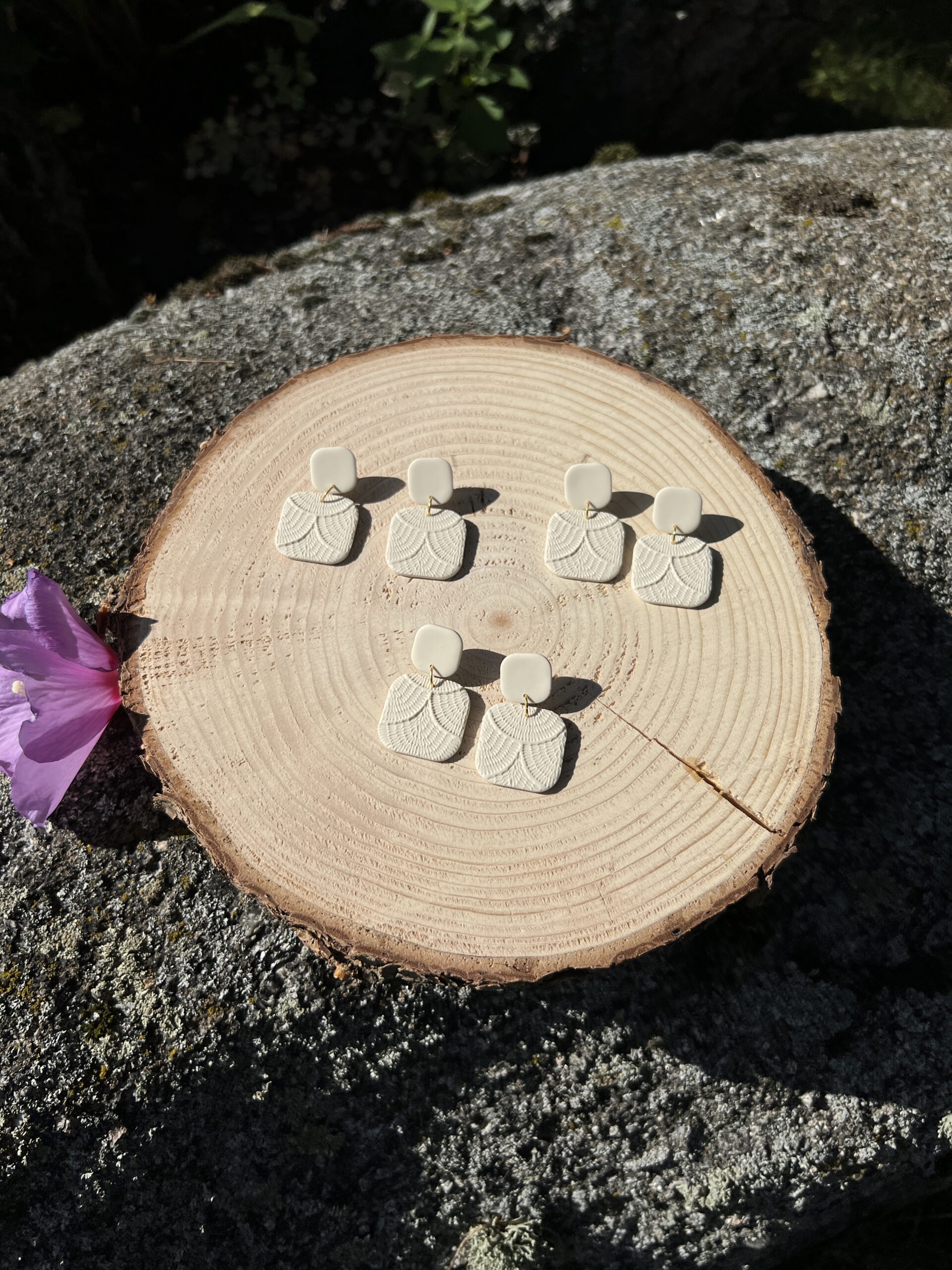 Ručně vyrobené polymerové náušnice.