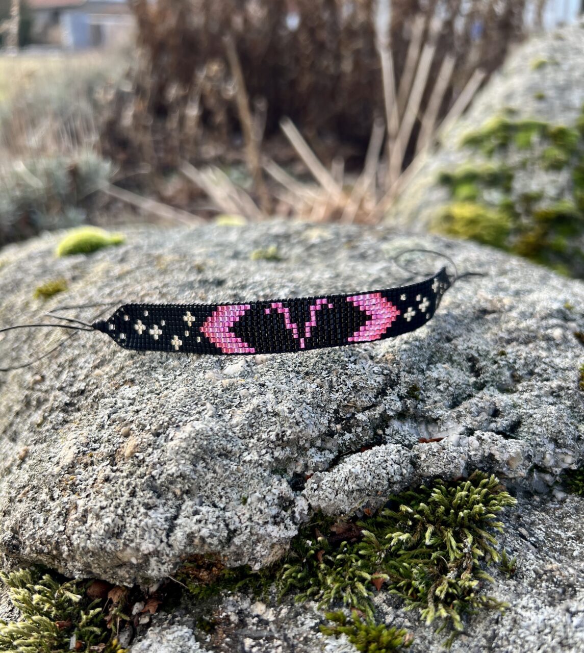 Jedná se o rokajlové korálky japonské výroby vyznačující se vysokou kvalitou, leskem a tvarovou přesností. Náramek je šitý kvalitní nilovou nití.