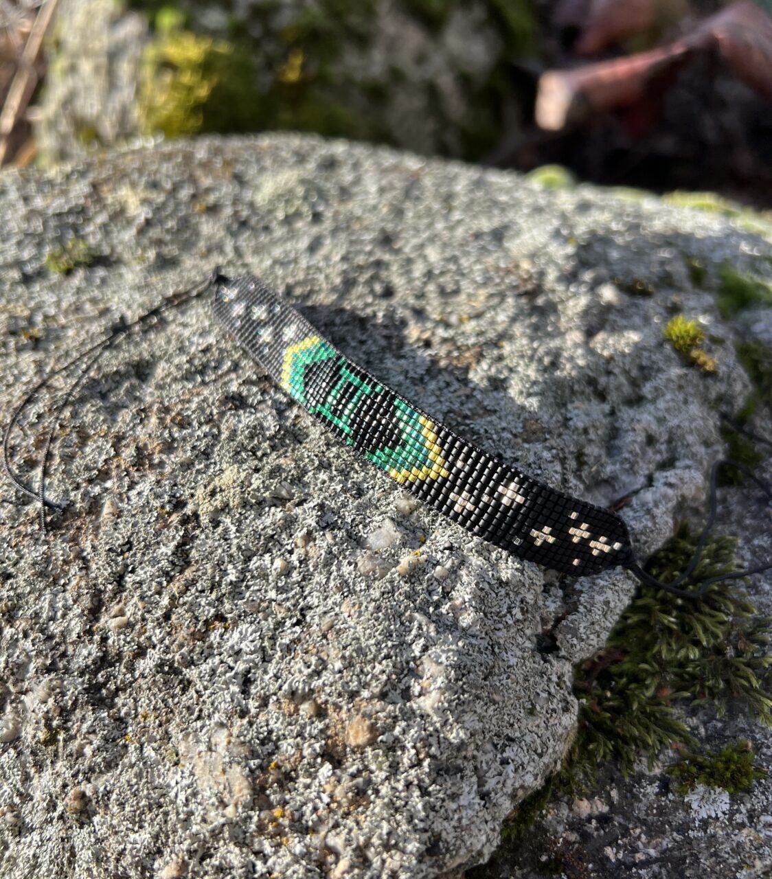 Jedná se o rokajlové korálky japonské výroby vyznačující se vysokou kvalitou, leskem a tvarovou přesností. Náramek je šitý kvalitní nilovou nití.