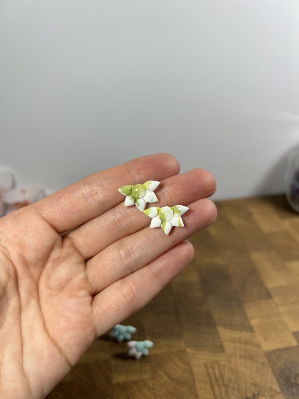Každý pár je jedinečný a originál, můžou se mezi sebou lišit barevně, záleží jak byl daný kus vytlačený či ručně vymodelovaný.