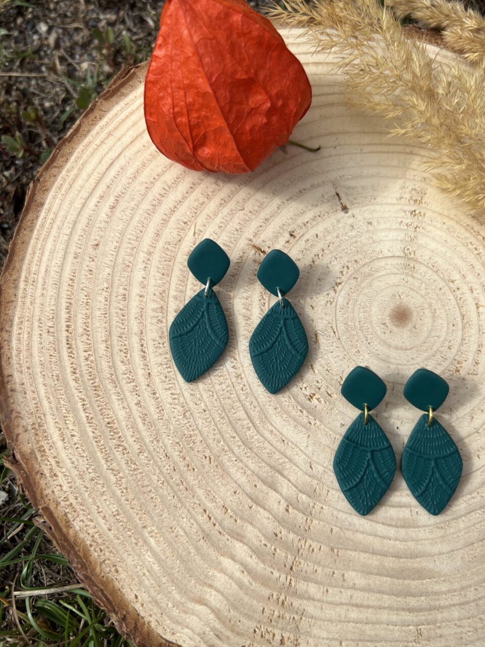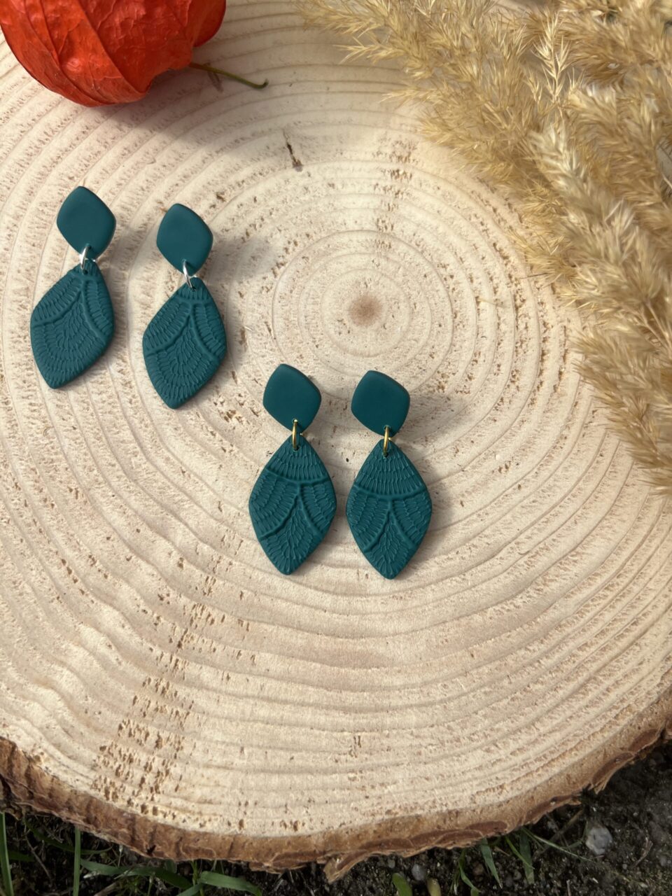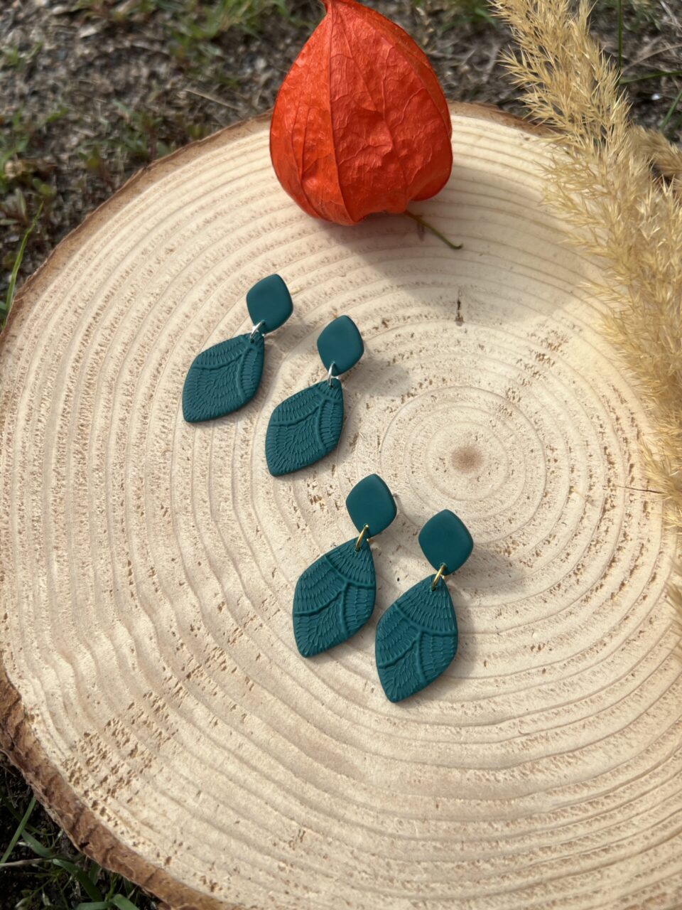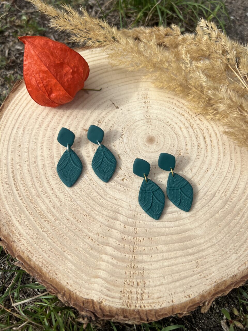 Ručně vyrobené polymerové náušnice.