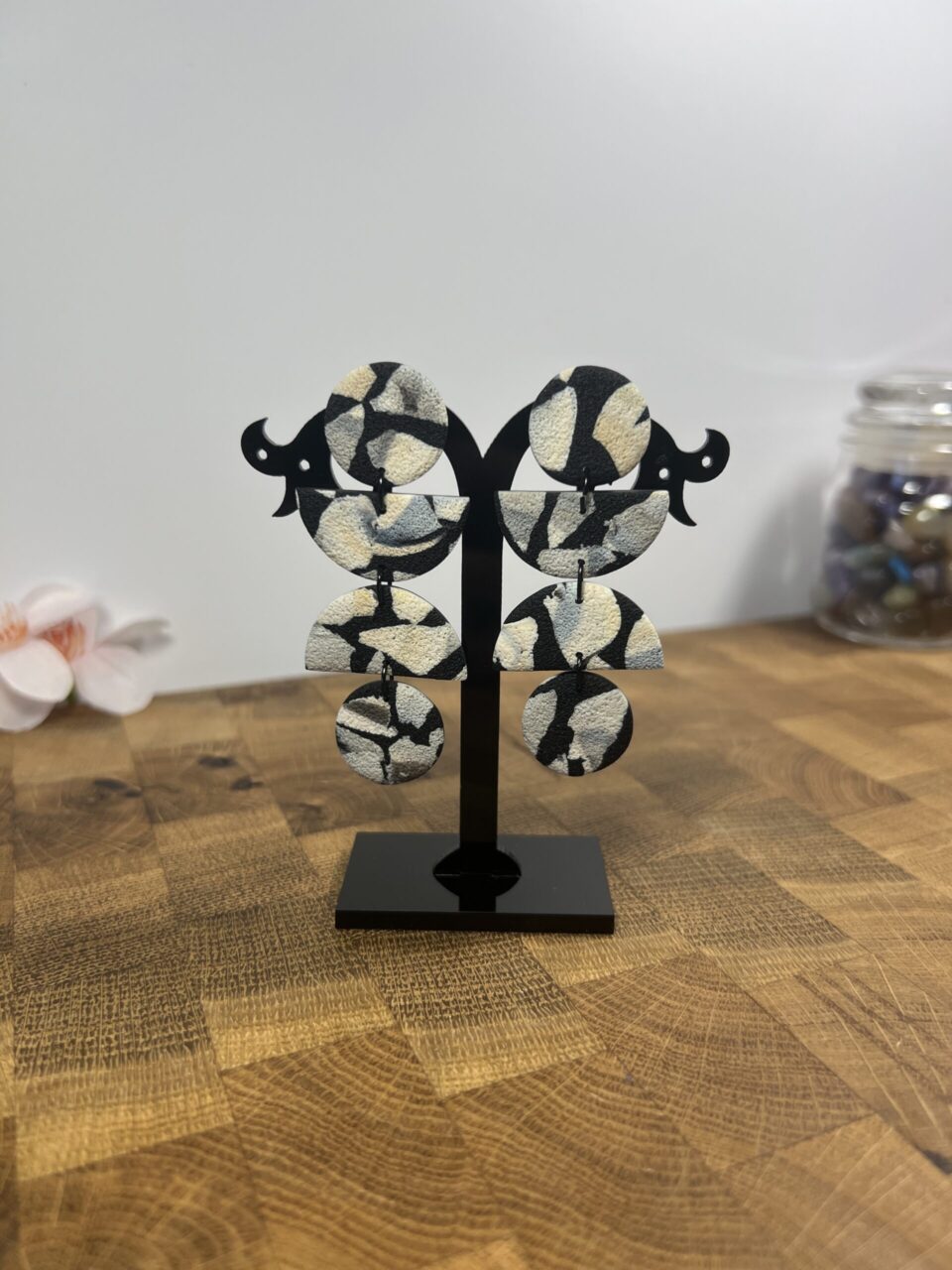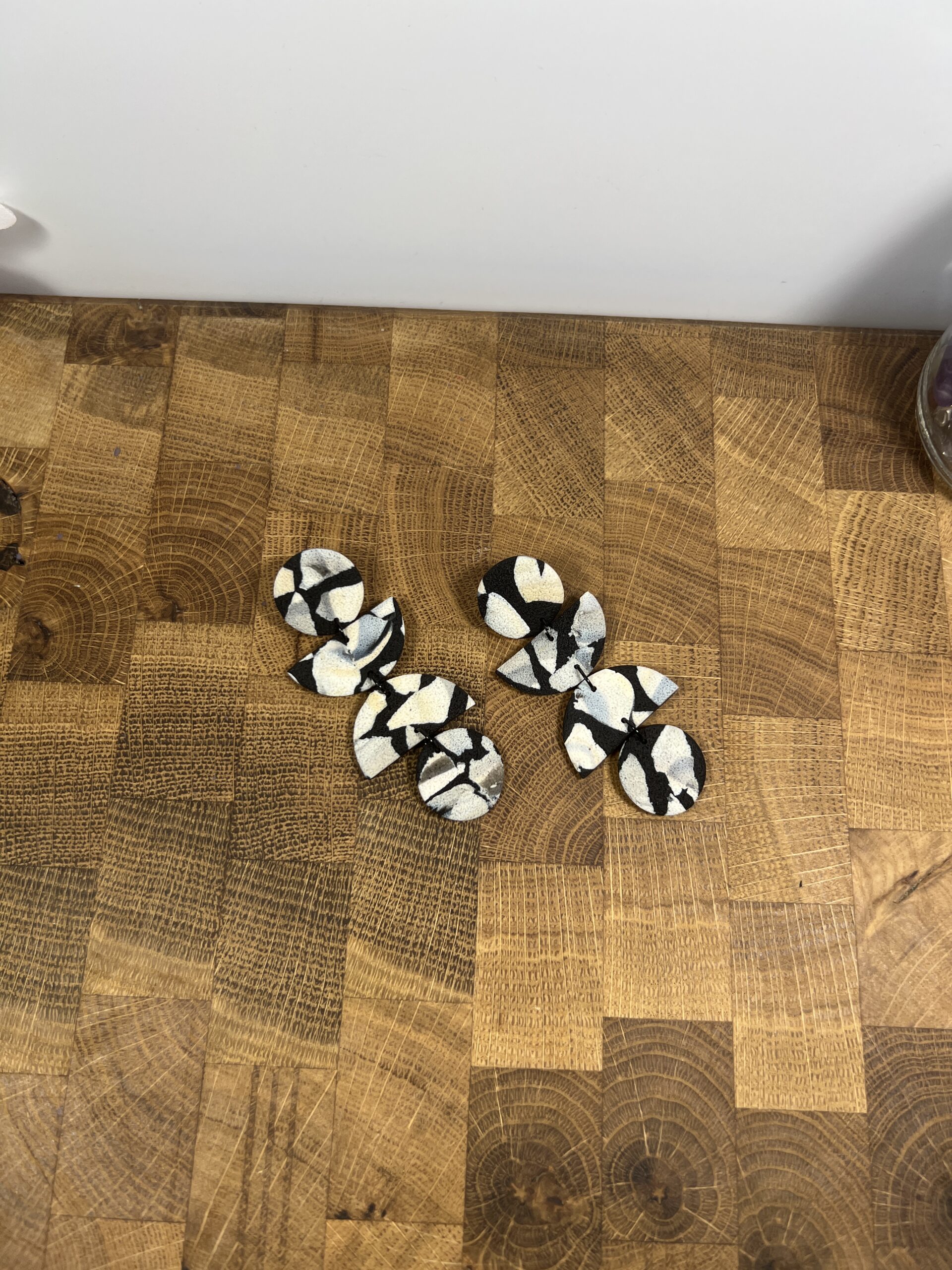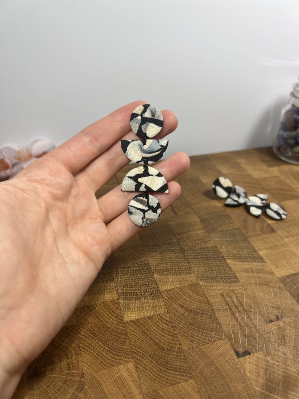 Ručně vyrobené polymerové náušnice.