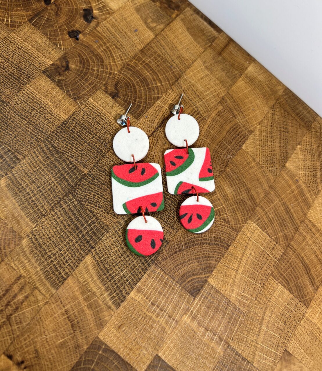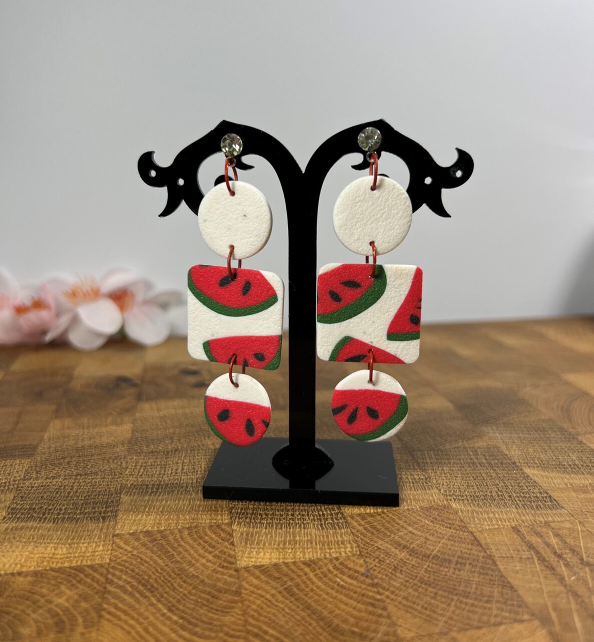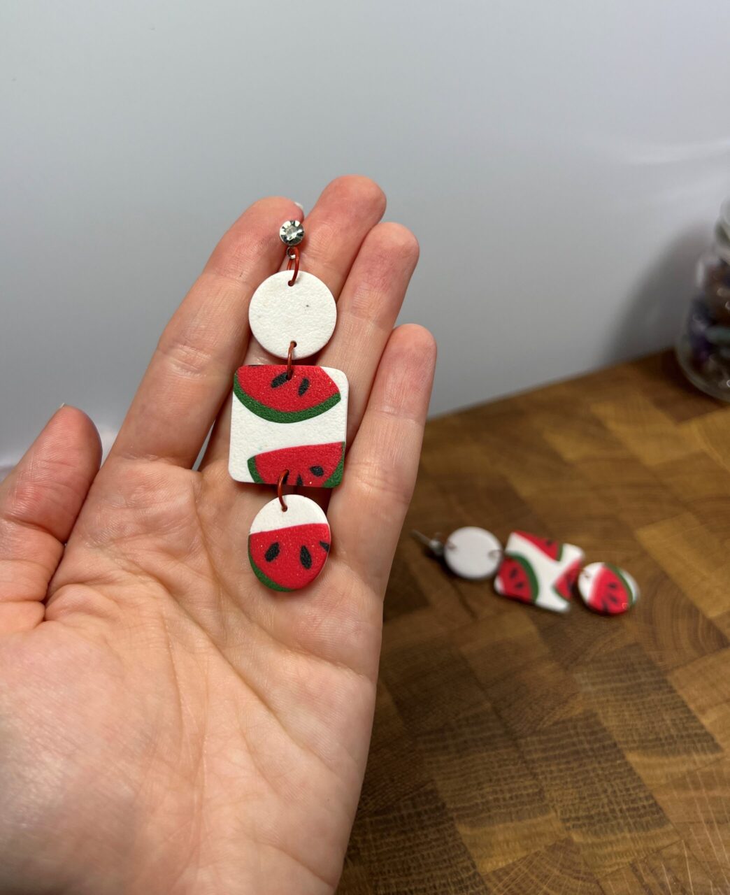 Ručně vyrobené polymerové náušnice.