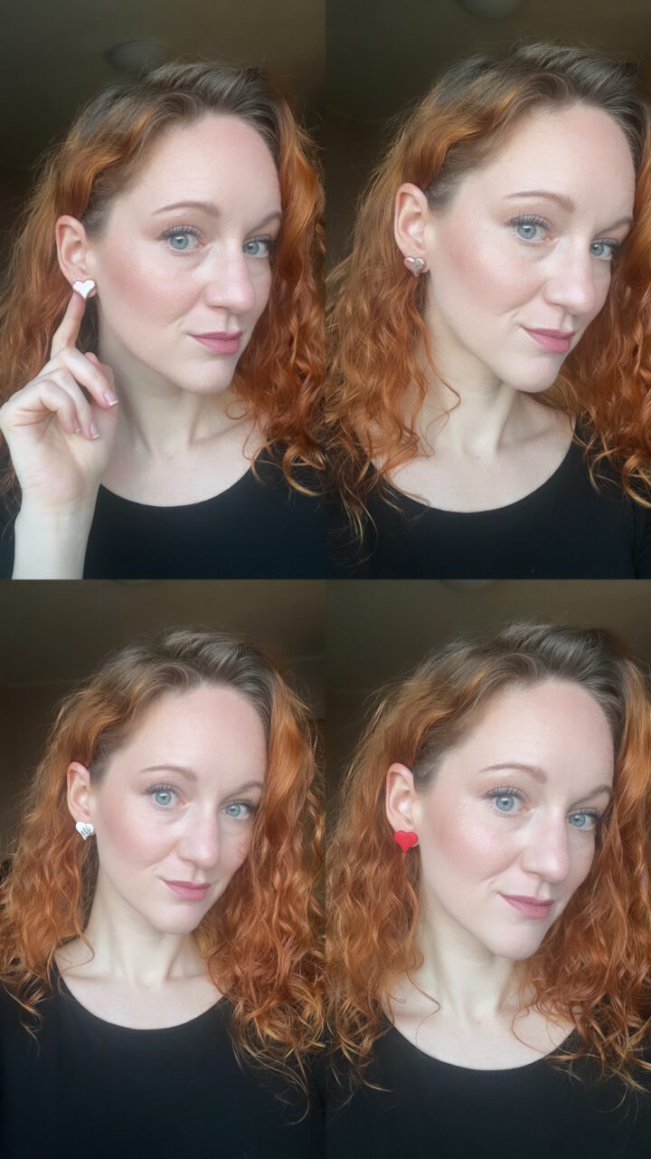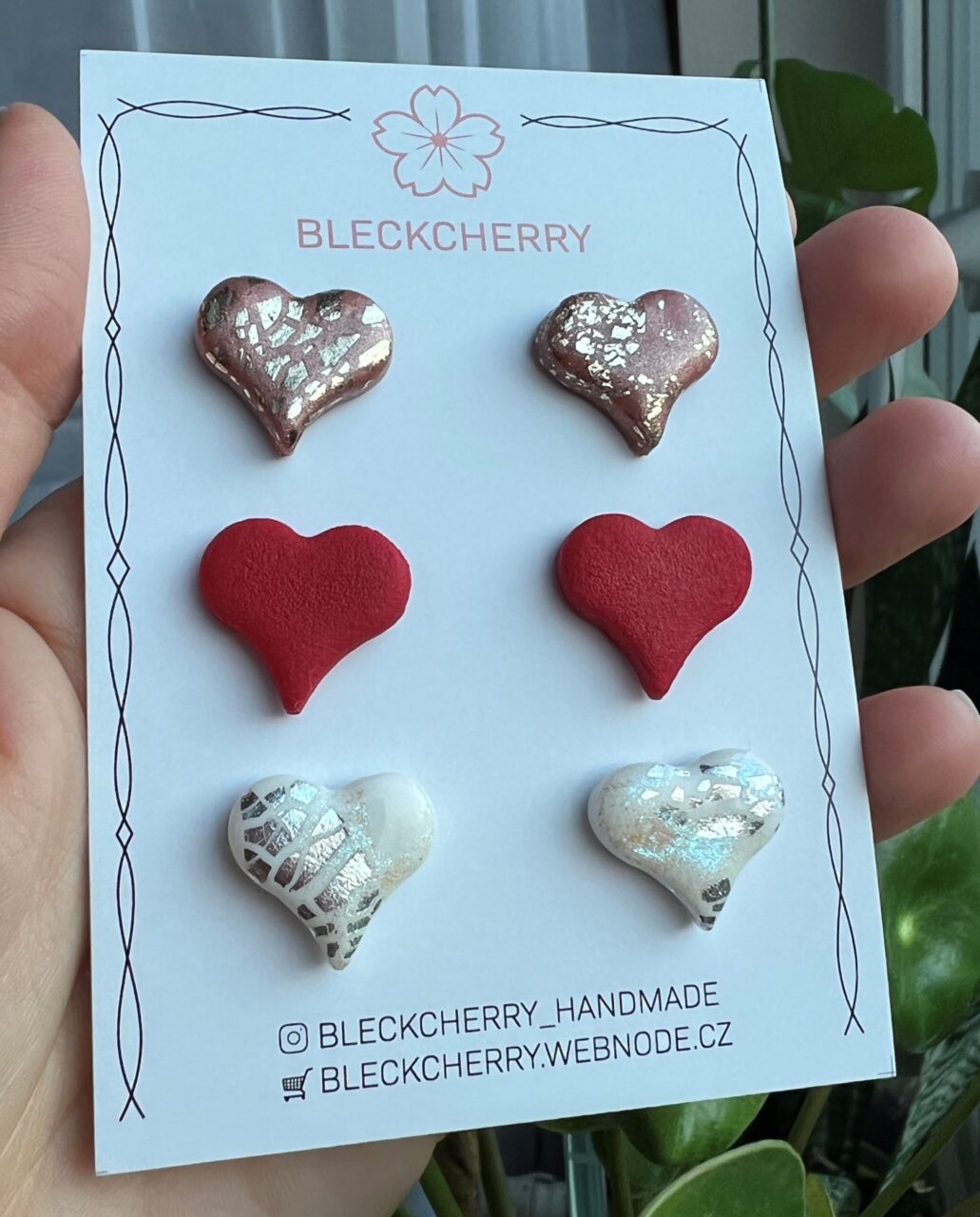 Najdete zde jak klasickou červenou barvu, tak i bílé srdíčko se stříbrem a inkoustem v barvě duhy. Poslední barva je růžový křemen se zlatem 🙂