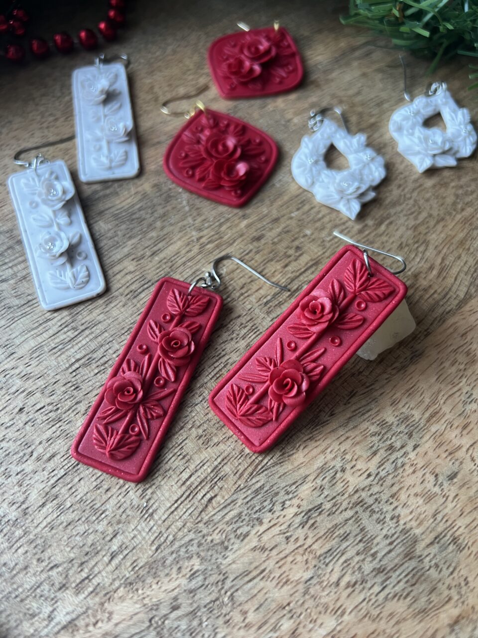 Ručně vyrobené polymerové náušnice.