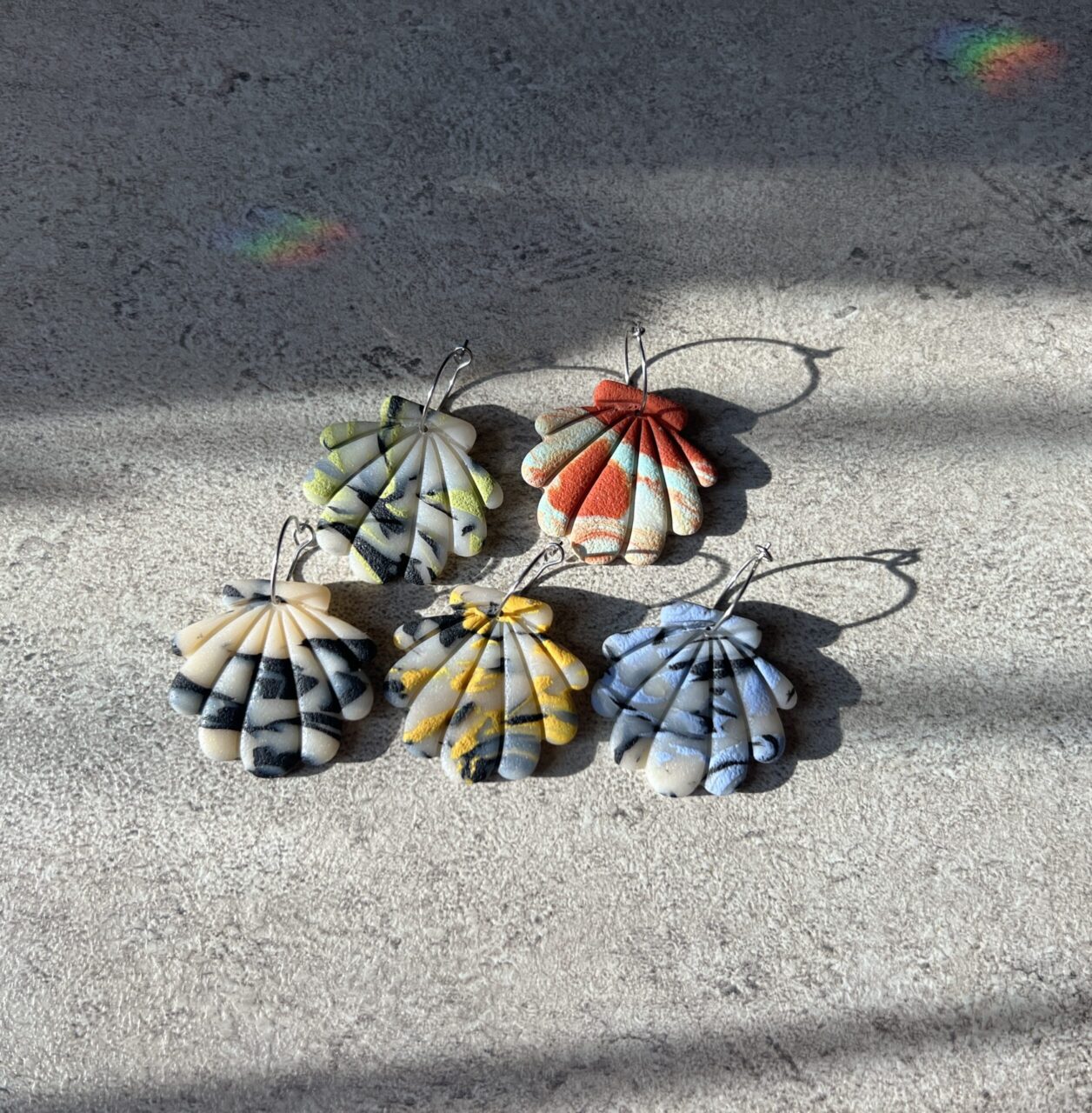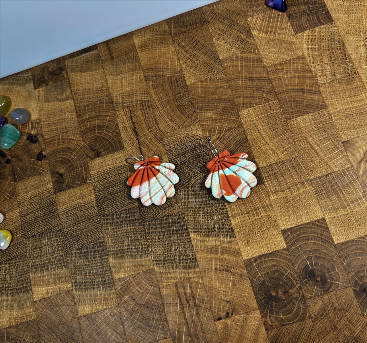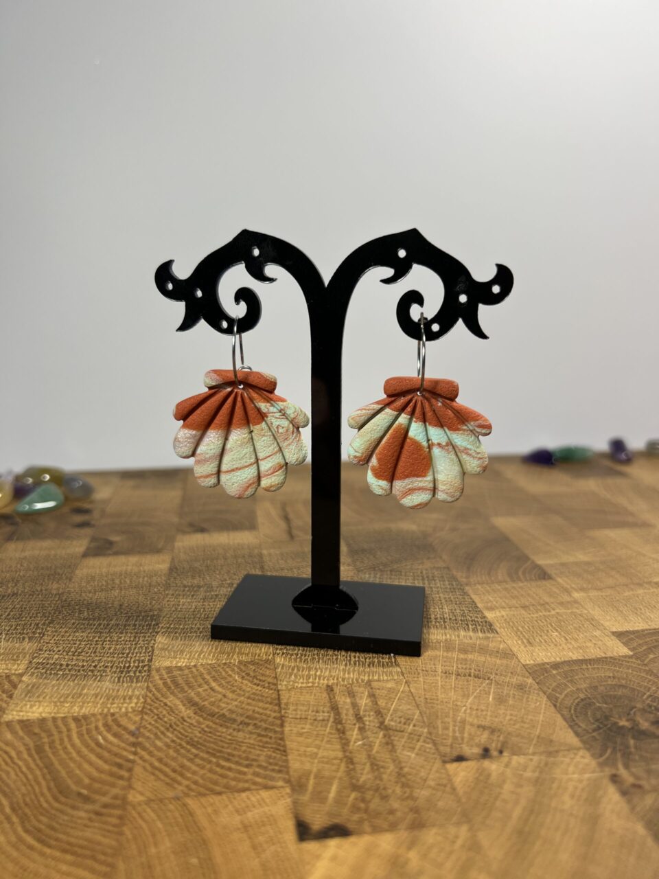 Ručně vyrobené polymerové náušnice.
