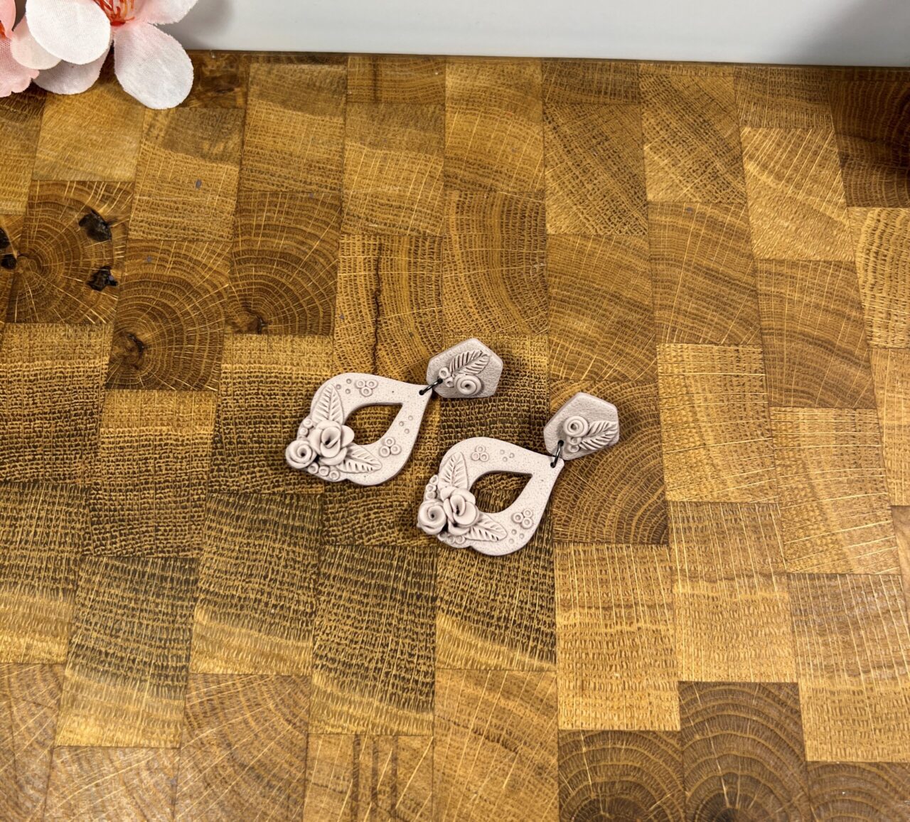 Ručně vyrobené polymerové náušnice.
