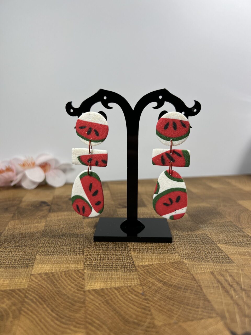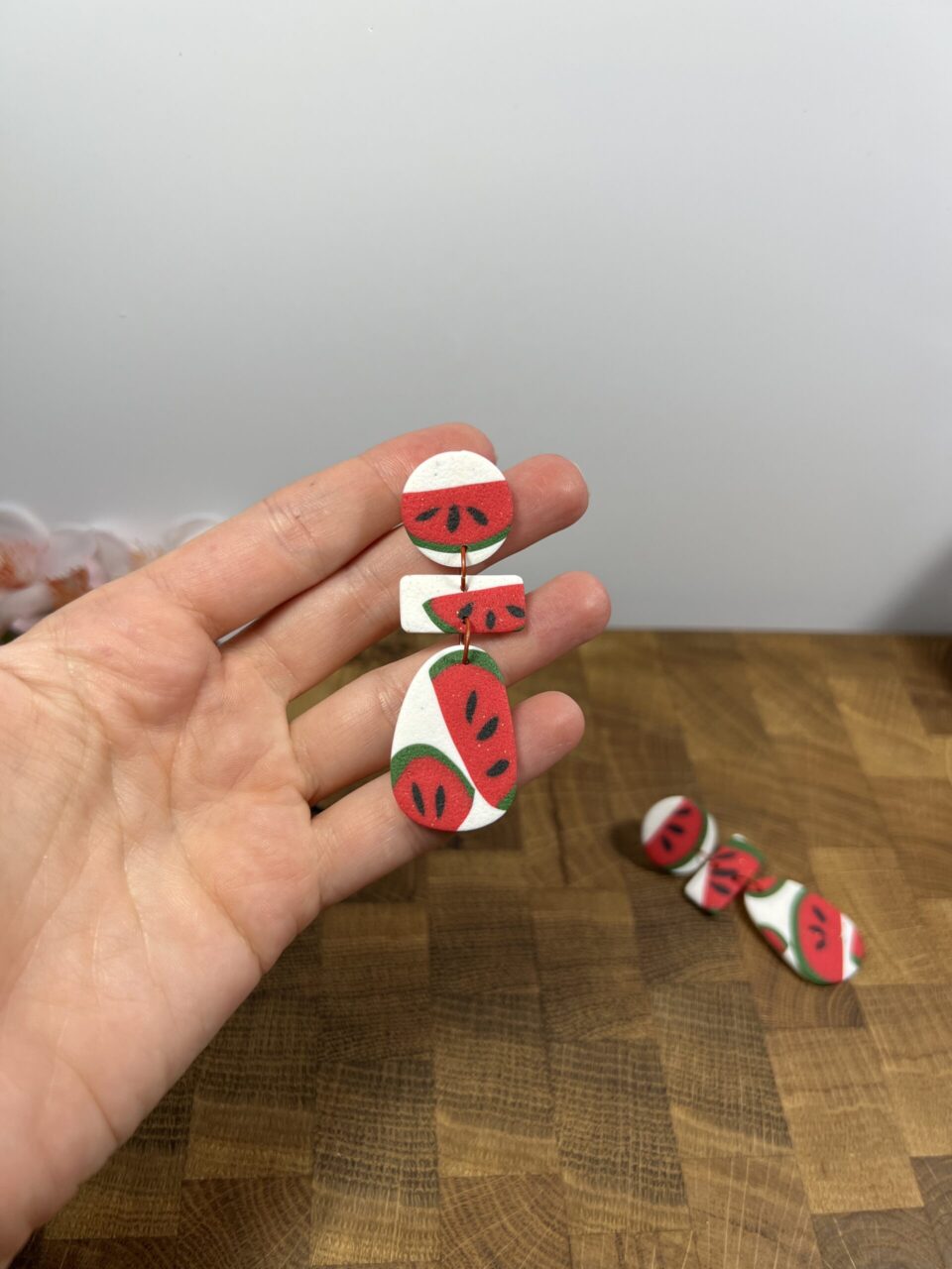 Ručně vyrobené polymerové náušnice.