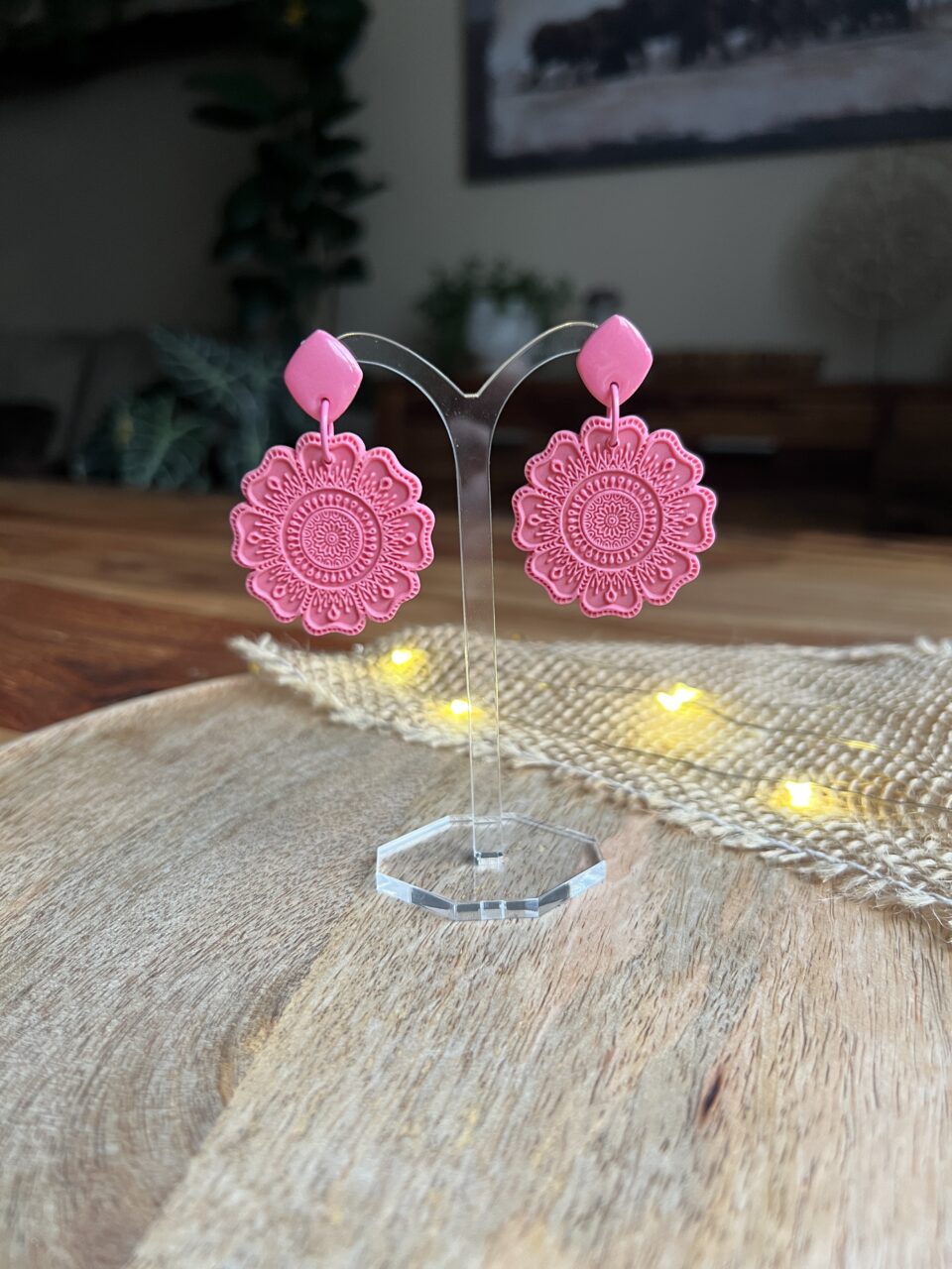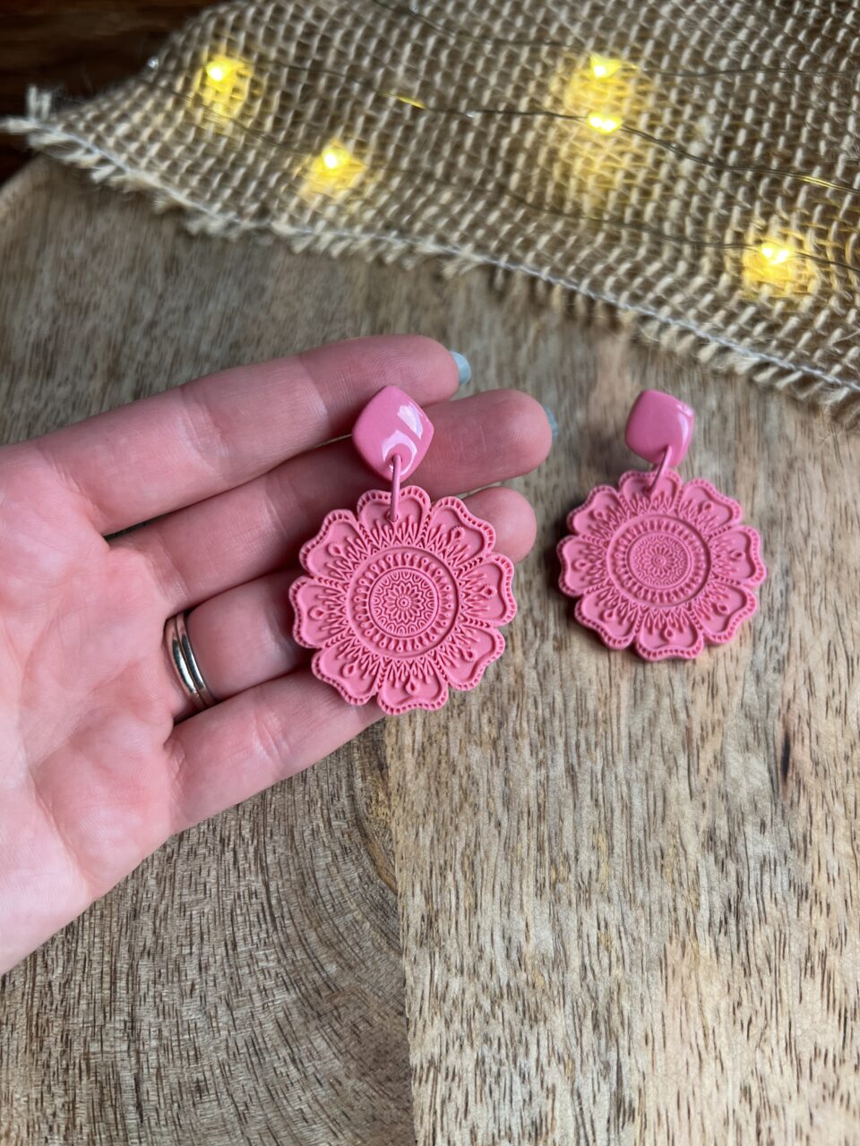Ručně vyrobené polymerové náušnice.