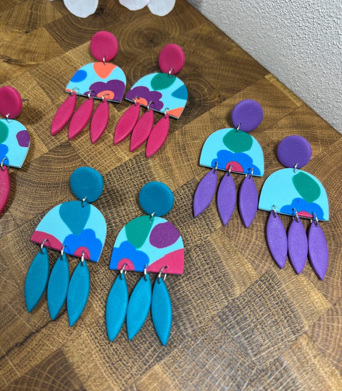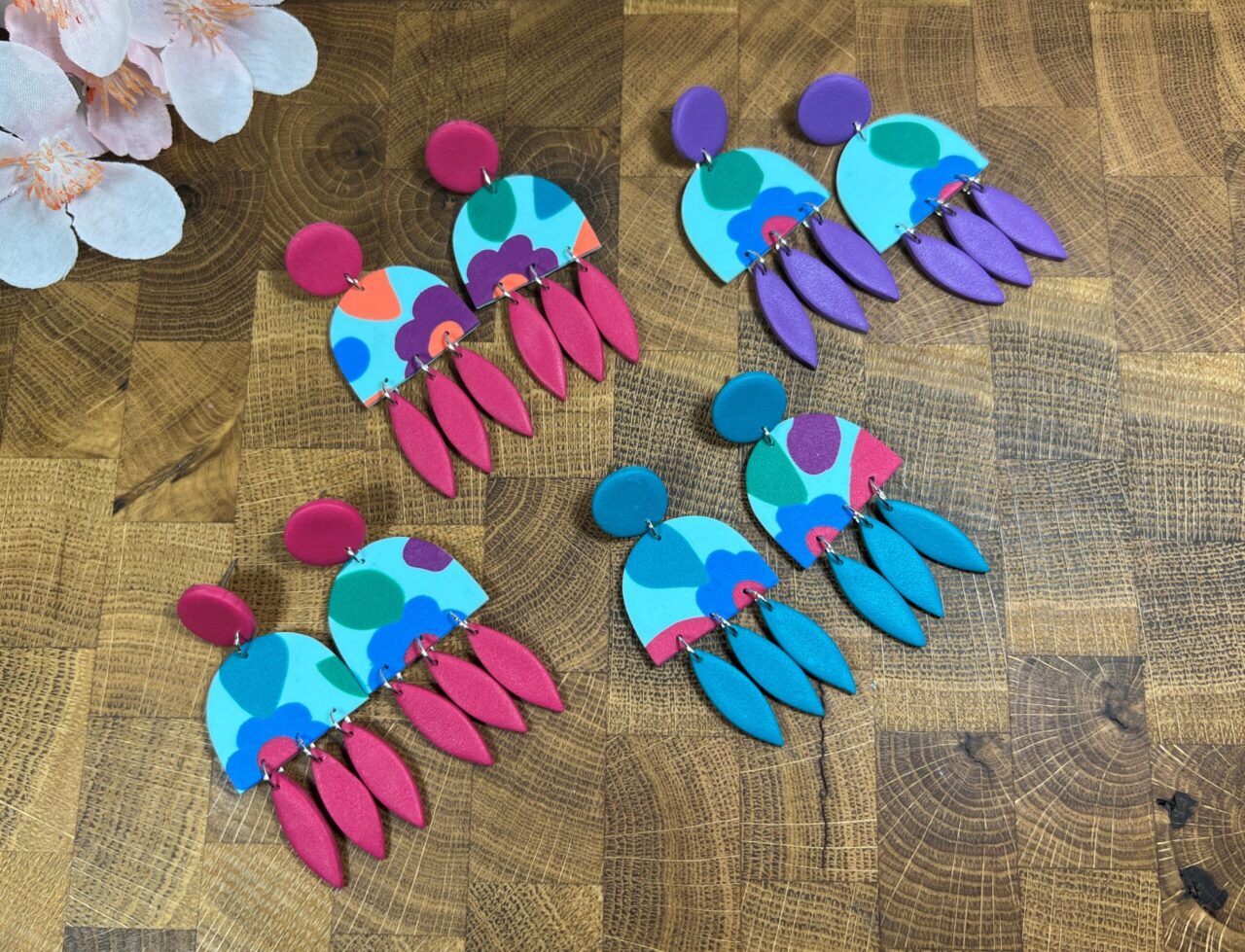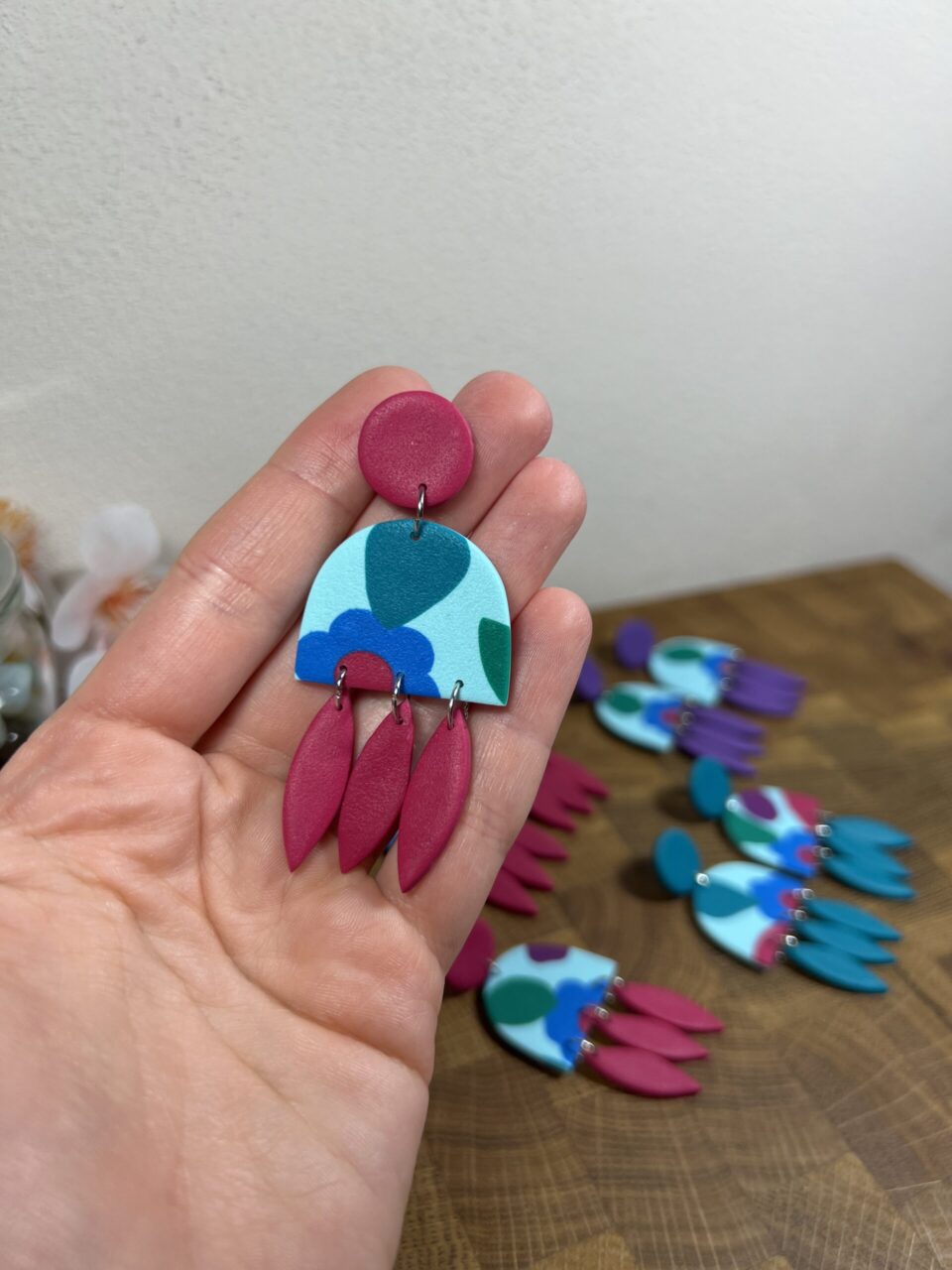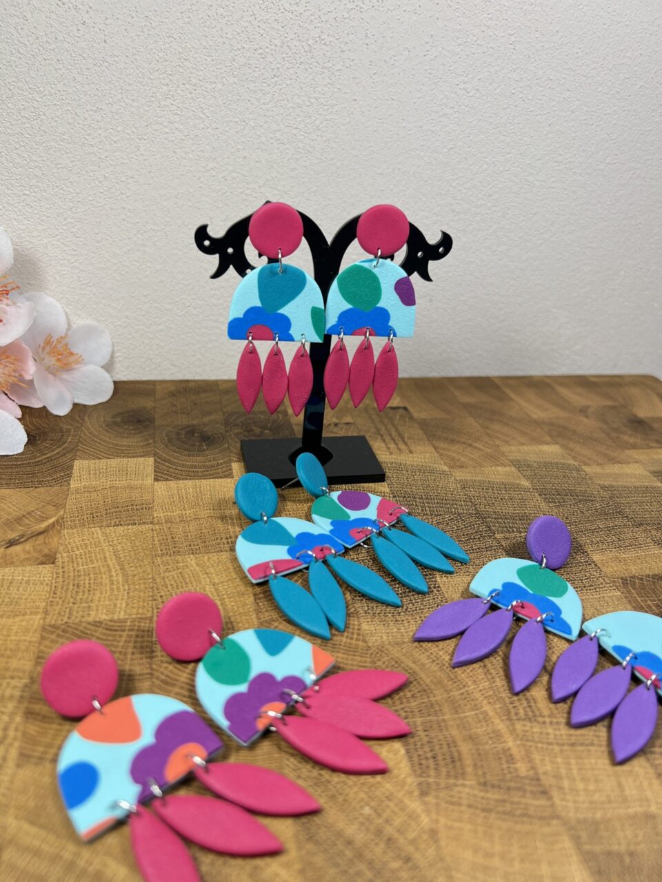 Ručně vyrobené polymerové náušnice.