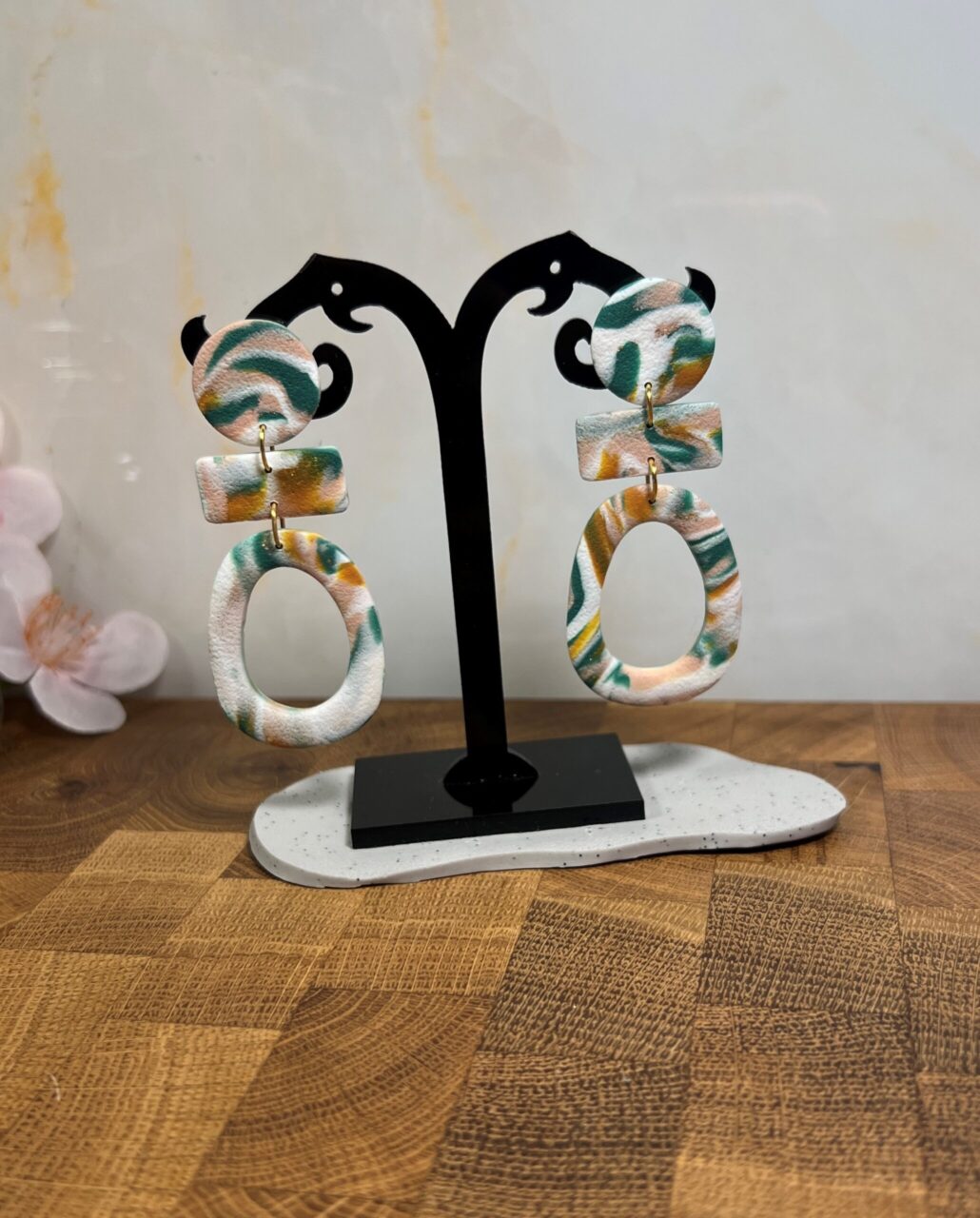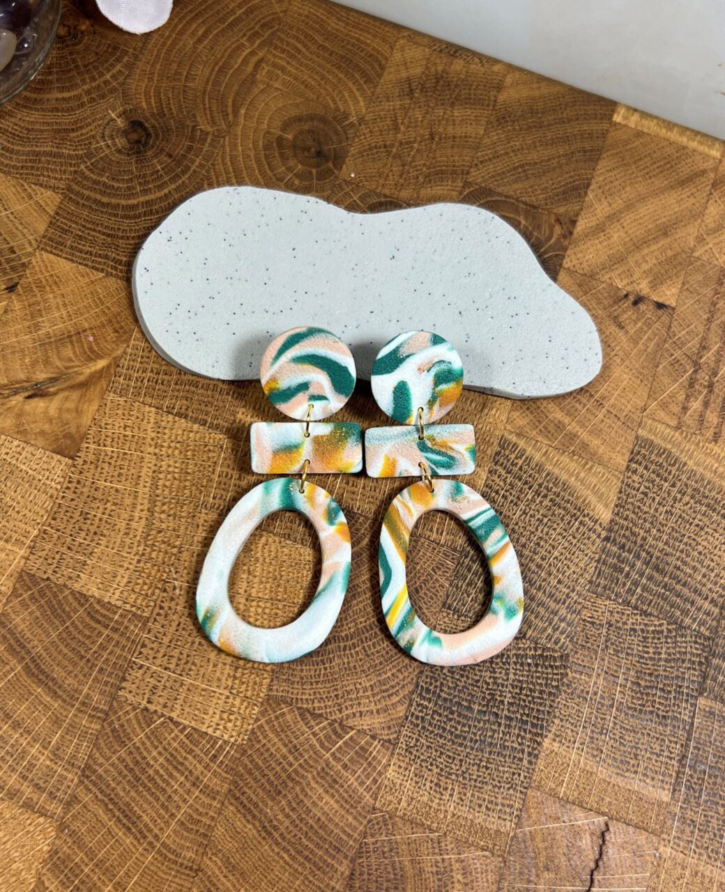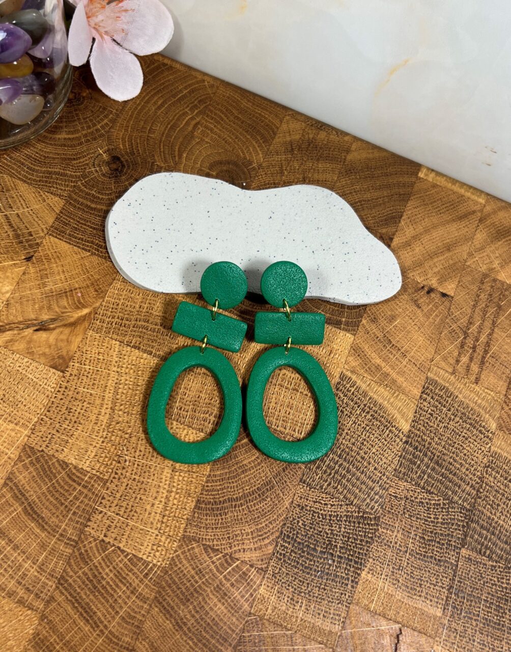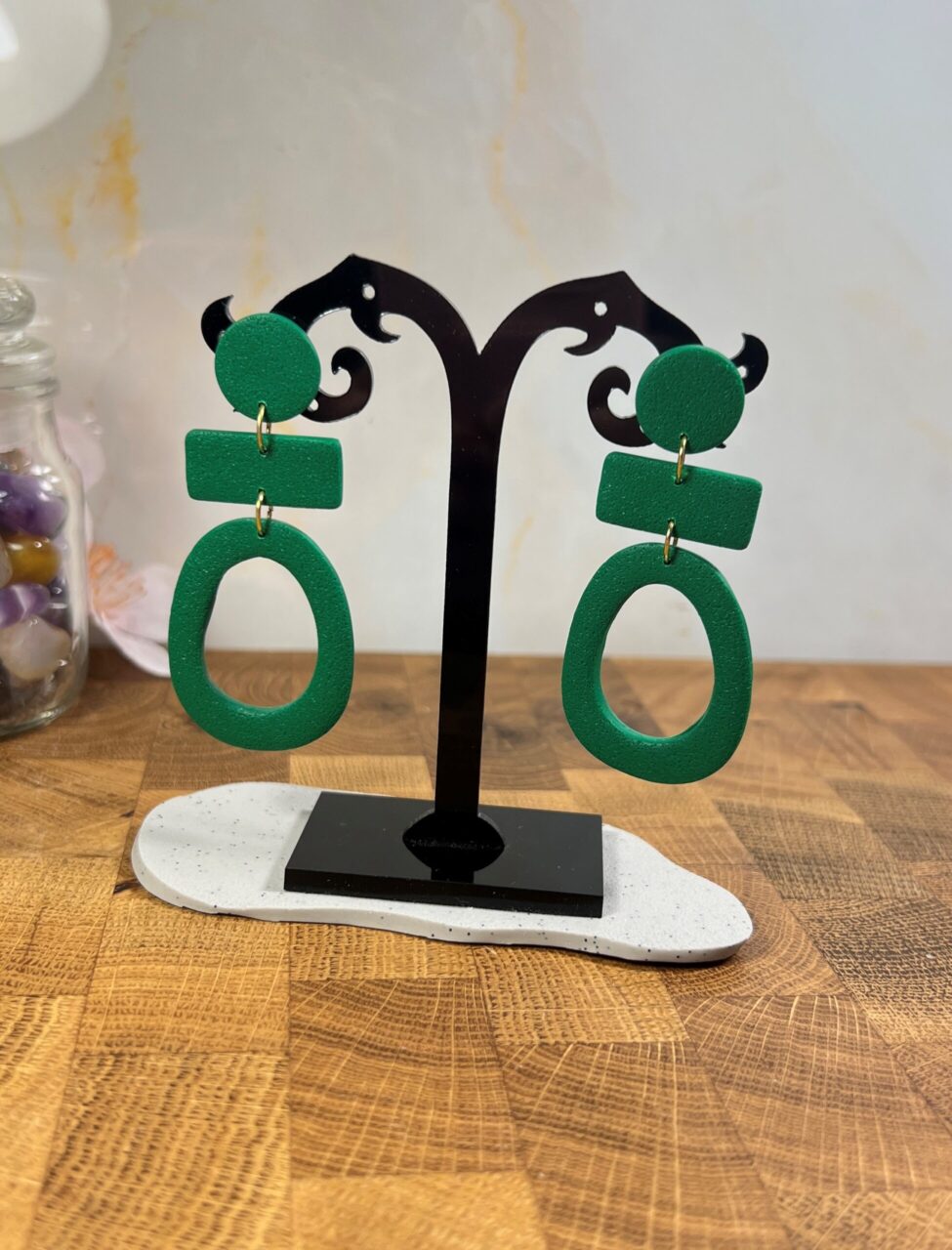 Ručně vyrobené polymerové náušnice.